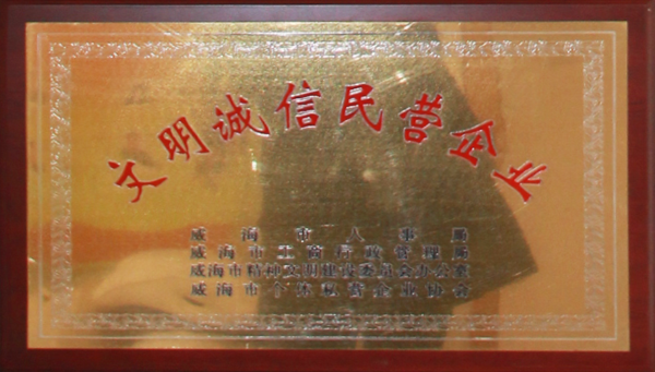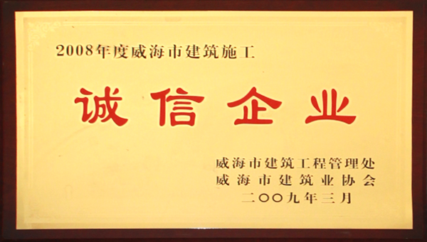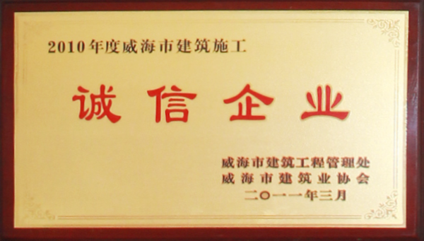 公司連續(xù)八年榮獲威海市“誠信開發(fā)企業(yè)”、“建筑施工誠信企業(yè)”,連續(xù)九年被評為威海市級“守合同重信用企業(yè)”,多次被評為威海市“市級文明單位”、“質(zhì)量管理先進(jìn)企業(yè)”、 “安全管理先進(jìn)企業(yè)”,乳山市“優(yōu)秀企業(yè)”、“先進(jìn)民營企業(yè)”、“納稅明星企業(yè)”,在社會(huì)上逐步樹立了誠信、穩(wěn)健的企業(yè)形象。
